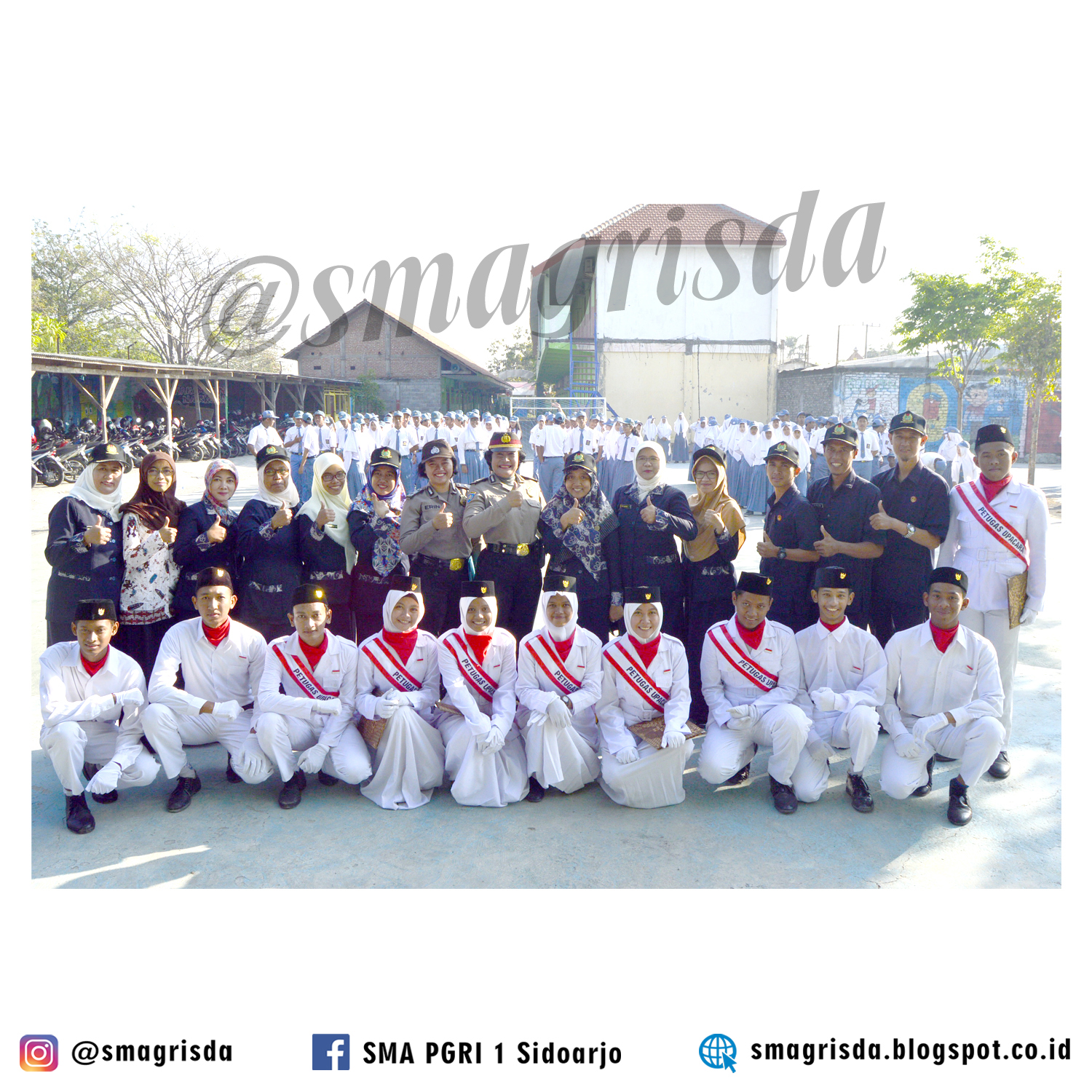 Upacara Hari Senin di SMA PGRI 1 Sidoarjo dengan pembina Ibu Wakapolsek Sidoarjo Kota. Materi pengarahan tentang maraknya peredaran narkoba di kalangan pelajar dan tata…